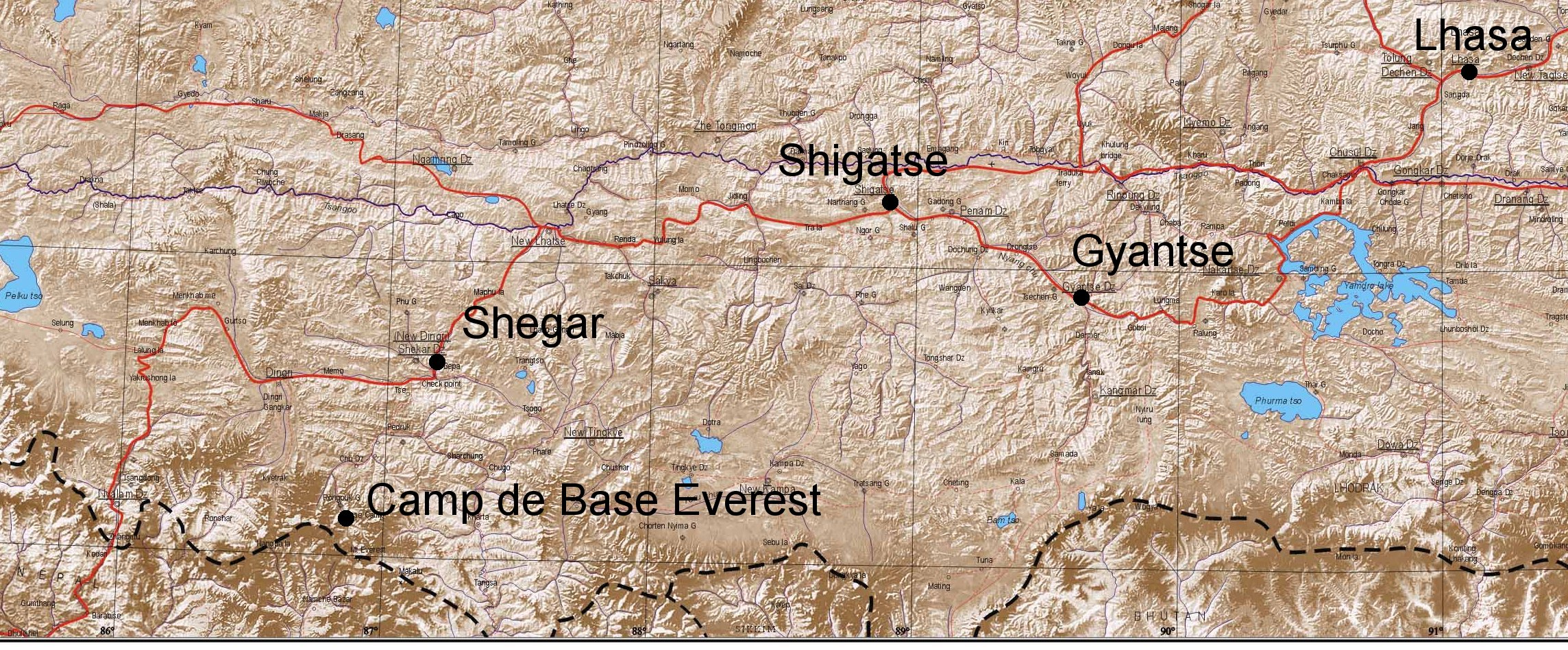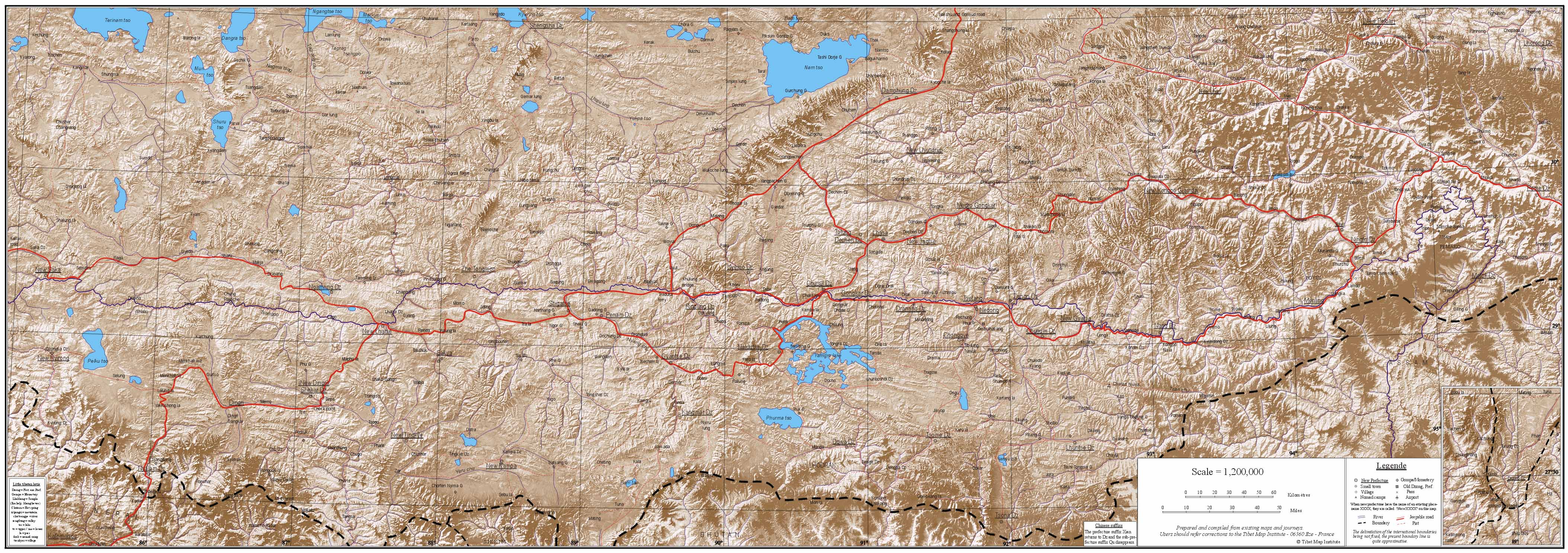 Carte originale (4215x1488), prise sur le site du Tibet map institute