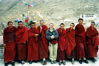 | Elyse bien entourée de moines juste après notre arrivée au monastère. |