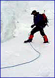 heures de marche. Alpinistes et trekkeurs remontent le glacier