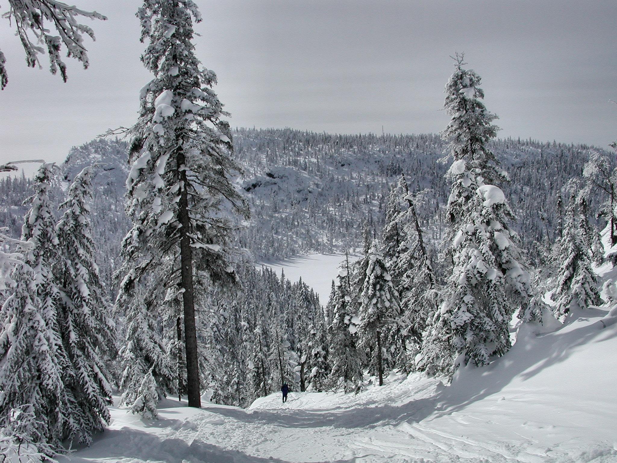 Une section assez difficile de la piste entre le refuge du Fantôme et celui du Nelligan. Très à pic et pas beaucoup d'espace pour tourner si on n'a pas les skis appropriés. Heureusement la profondeur de la neige permet d'absorber assez efficacement les chocs lorsqu'on tombe.
